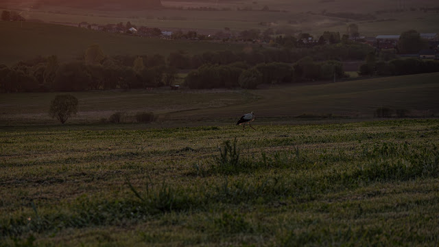 I bociek uchwycony, w ostatnich promieniach.